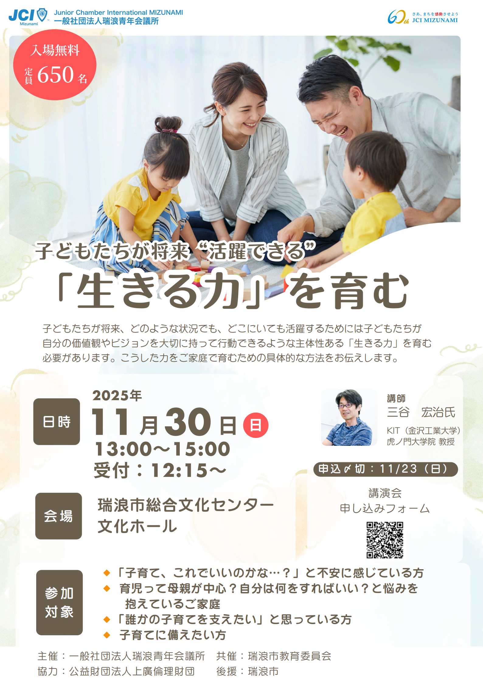 11/30 300~1430 瑞浪JC親向け 「子どもたちが将来活躍できる「生きる力」を育む」
