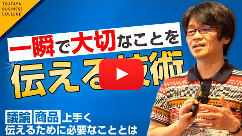この動画シリーズでは、「重要思考」「伝える力」「ほめる力」「決める力」が学べます。これらは『〔新版〕一瞬で大切なことを伝える技術』発刊時に、TSUTAYAが運営するビジネスカレッジ向けに制作した動画です。